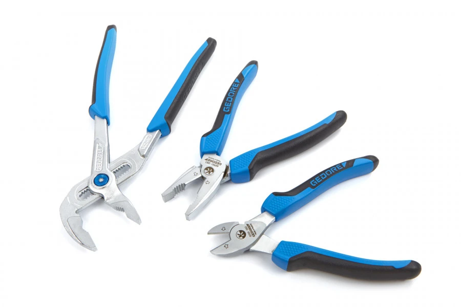 Zoek jij een tang? Grote kans dat dit een combinatietang of een waterpomptang is. Dit zijn de meest gebruikte tangen, door zowel professionals als door klussers. Met de driedelige tangenset van Gedore, krijg je naast deze twee tangen ook nog een zijkniptang. Iedereen die dan nog draden en kabels moet doorknippen, kan dit gemakkelijk met deze tang. De handgrepen van de tangen zijn gemaakt van een tweecomponentenmateriaal. Hierdoor heb je altijd grip en zijn de tangen erg comfortabel in gebruik.