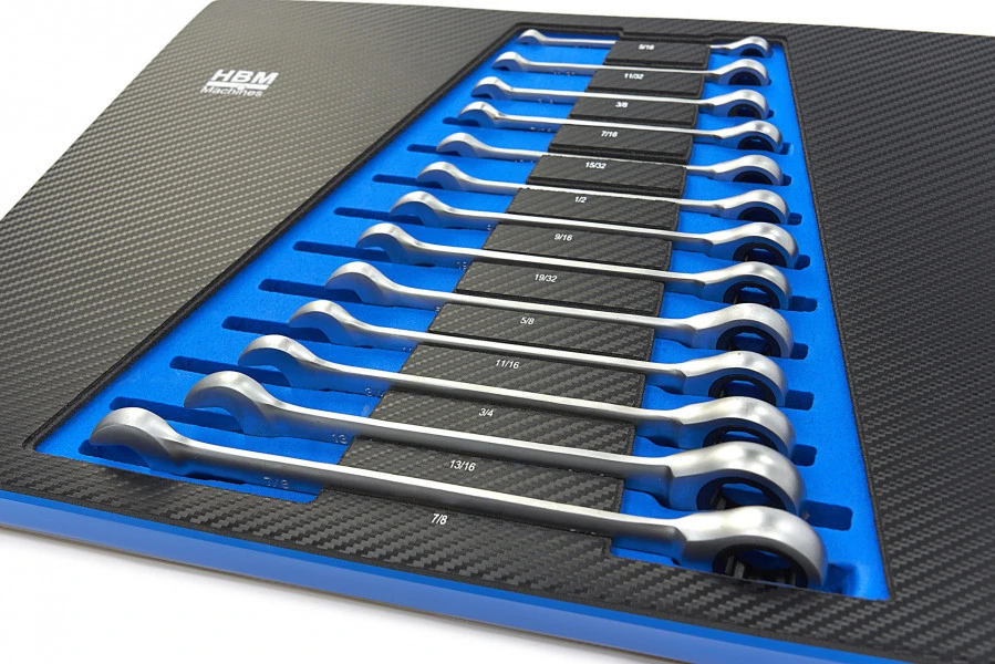 HBM 13 Delige Ring, Ratel, Steeksleutelset INCH In Carbon Foam Inlay Voor Gereedschapswagen