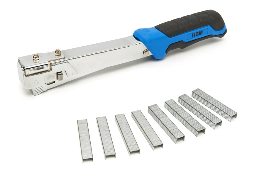 Deze krachtige en solide HBM Hamertacker, Slagtacker, Slagnieter bevat een ergonomisch soft-touch handvat en RVS afwerking. De tacker is ideaal voor het monteren van isolatiefolie/platen, dakdekking, dunne afdeklatjes, vloerbedekking ed.