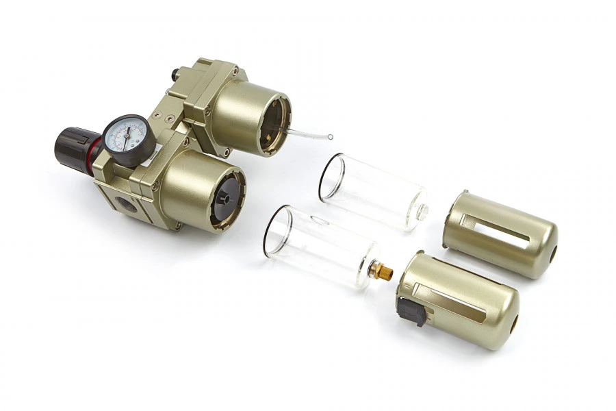 De regelaar voorziet schone en droge perslucht. Voorkomt kostbare schade aan pneumatisch gereedschap, veroorzaakt door schilfers, roest en vocht. De integrale olievoorziening houdt uw machine gesmeerd. Gemakkelijk te installeren. Werkdruk 10 bar, verstelbaar drukbereik Van 0,5 Tot 8,5 bar.