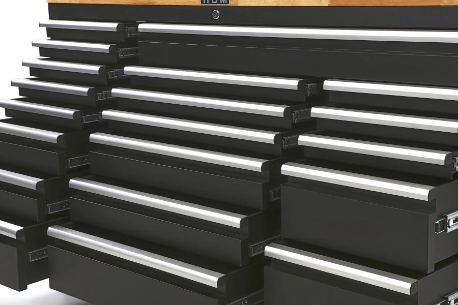 De HBM 20 Laden Gereedschapswagen / Werkbank met Houten Werkblad is de perfecte oplossing voor het creëren van een georganiseerde en efficiënte werkruimte. Deze veelzijdige gereedschapswagen biedt ruime opbergruimte in 20 volledig uittrekbare laden voor diverse gereedschappen en materialen. Het massief houten bovenblad voegt niet alleen een stijlvolle uitstraling toe, maar biedt ook een stevige basis voor verschillende werkzaamheden. Dankzij hoogwaardige zwenkwielen is de mobiliteit verbeterd, waardoor het verplaatsen van de werkbank moeiteloos is. Bovendien zorgen solide beveiligingsfuncties, zoals een centraal slot, voor gemoedsrust. Kortom, deze gereedschapswagen is een must-have voor zowel kleine ateliers als grote bedrijven die streven naar een opgeruimde en georganiseerde werkruimte.