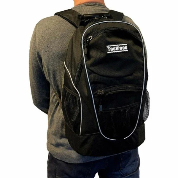De rugzak heeft een ruim hoofdvak met ritssluiting en twee compacte voorvakken met rits voor snelle toegang tot je spullen. Binnenin vind je drie open organizers voor een efficiënte opslag. De rugzak komt met een uitklapbare polyester gereedschapshouder van 32×38 cm met handvat. Hiermee heb je maar liefst 60 verschillende opbergmogelijkheden voor gereedschap en accessoires. Je kunt de gereedschapshouder verwijderen, waardoor de rugzak een handige vrijetijd rugzak wordt.